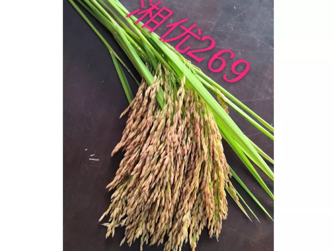 ? 湘優(yōu)269——2017年通過(guò)湖南審定,2019年最新通過(guò)國(guó)家審定,審定編號(hào):國(guó)審稻20190025。在長(zhǎng)江中下游作雙季晚稻種植,全生育期119.1天,比對(duì)照五優(yōu)308短1.6天。株高104.2厘米,穗長(zhǎng)22.2厘米,每畝有效穗數(shù)19.5萬(wàn)穗,每穗總粒數(shù)167.8粒,結(jié)實(shí)率79.3%,千粒重28.2克。米質(zhì)主要指標(biāo):整精米率63.8%,堊白粒率29%,堊白度3.9%,直鏈淀粉含量15.5%,膠稠度82毫米,長(zhǎng)寬比3.0,達(dá)到國(guó)家《優(yōu)質(zhì)稻谷》標(biāo)準(zhǔn)3級(jí)。